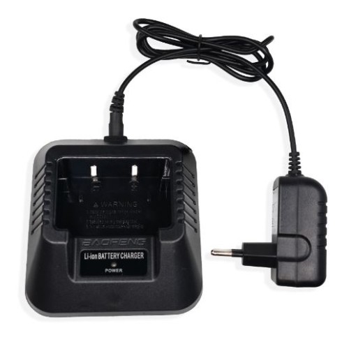 Replacement charger for Baofeng UV5 series.This is a cradle with separate power supply.The charger will charge the standard and extended batteries.